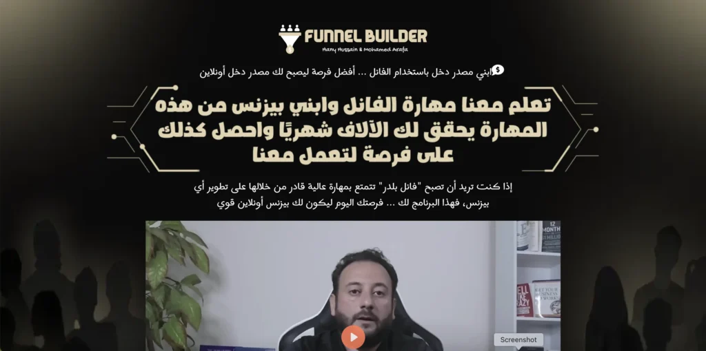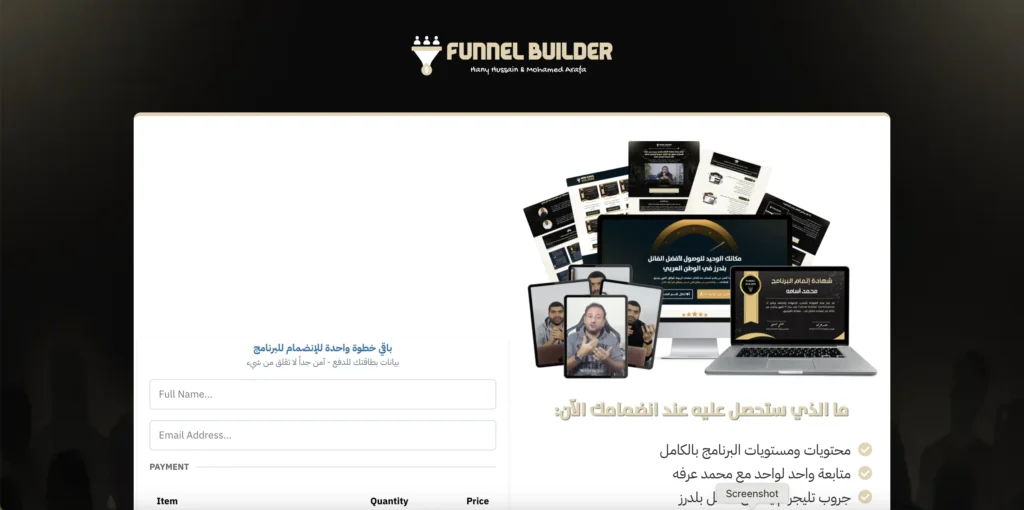 الصفحة البيعية وصفحة الدفع لبرنامج الفانل بلدر الأشهر بموقع باور أوف فانل، صفحة قوية واحترافية وبها شغل كثير جدًا.